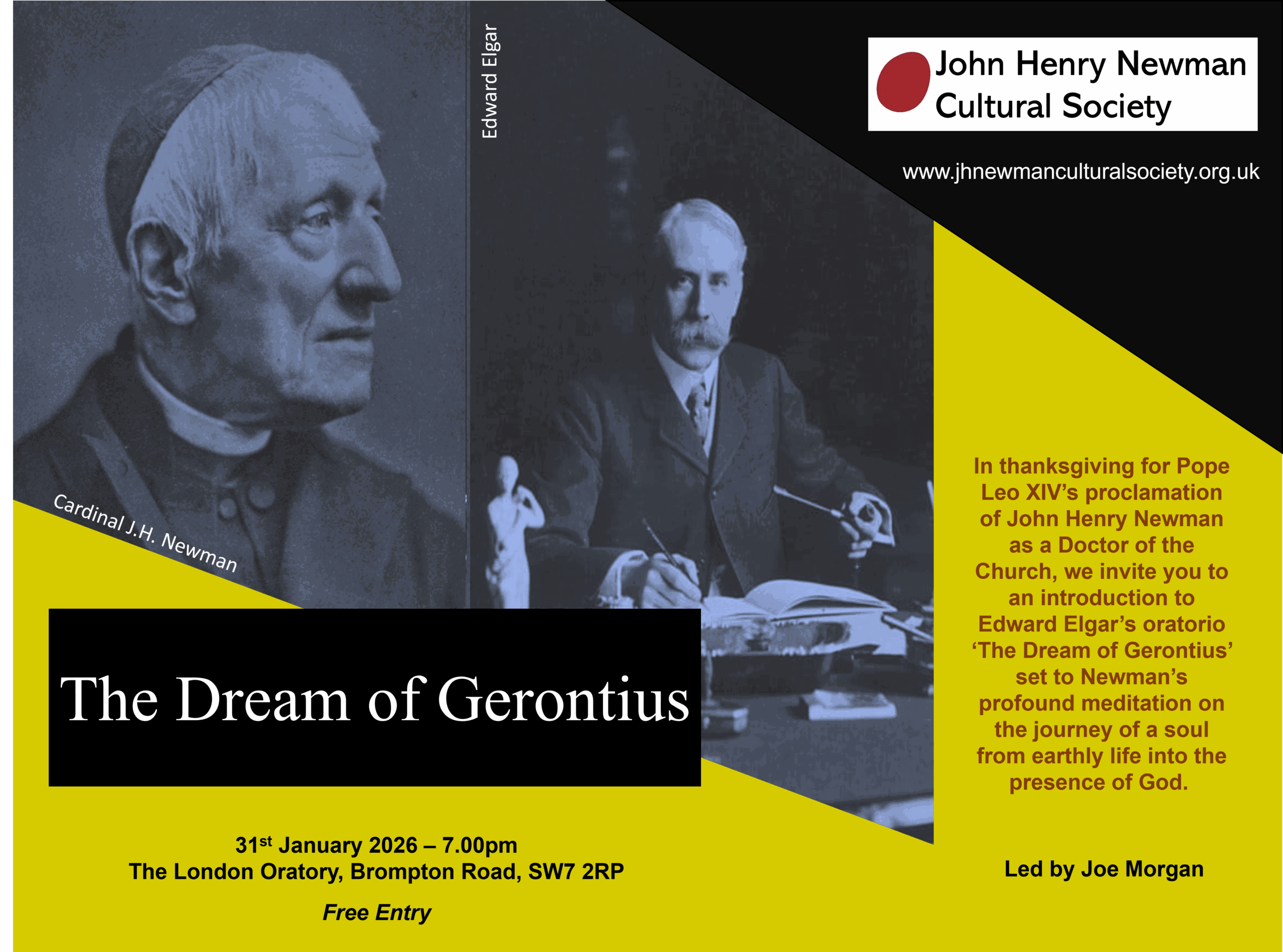 The Dream of Gerontius, written in 1865 by Cardinal John Henry Newman and later set to music by Edward Elgar, widely recognised as one of England’s greatest composers, is a profound reflection on the passage of a soul from death into the afterlife.